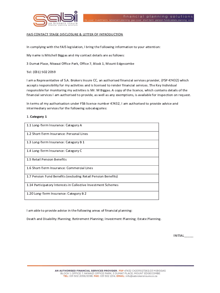 FANS CONTACT STAGE DISCLOSURE & LETTER OF INTRODUCTION In complying with the FANS legislation, I bring the following information to your attention: My name is Mitchell Niggas and my contact details