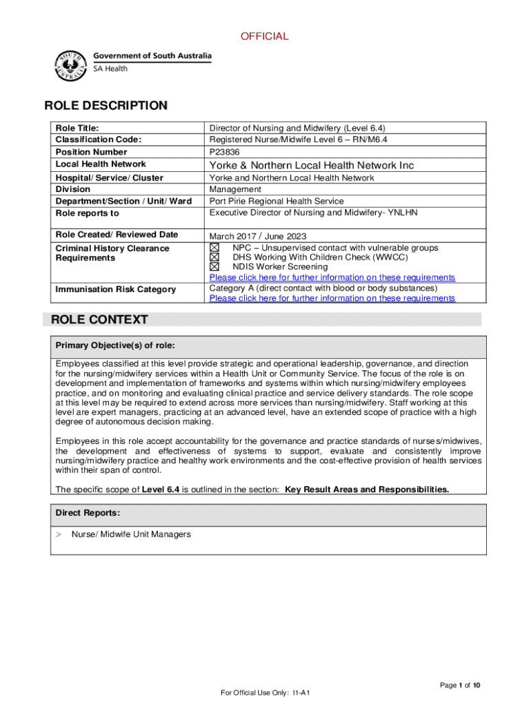 Local Health NetworkDirector of Nursing and Midwifery (Level 6.4)
