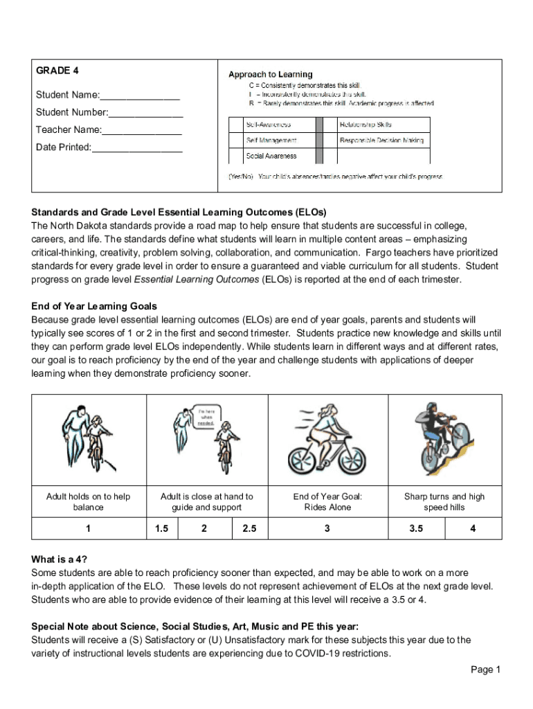 GRADE 4 Student Name:___ Student Number:___ Teacher Name:___ Date Printed:___Standards and Grade Level Essential Learning Outcomes (ELO's) The North Dakota standards provide a road map to help ensure