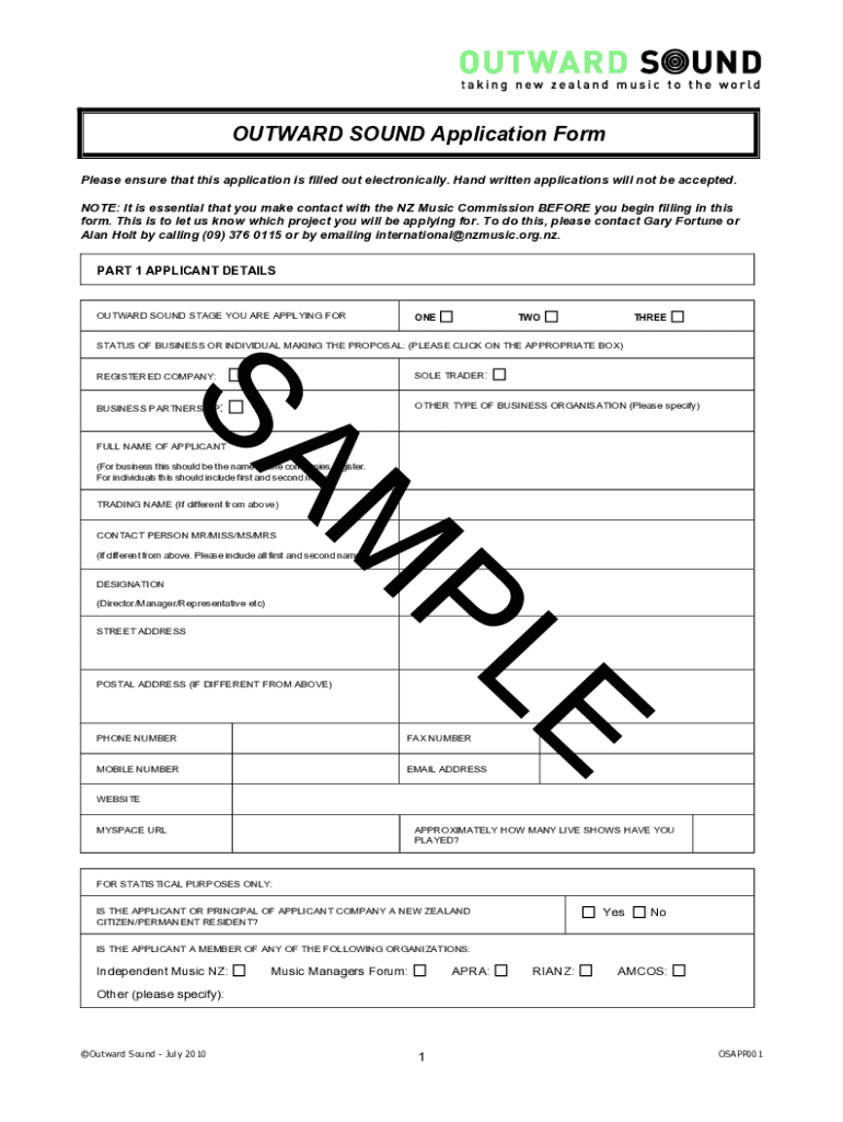 OUTWARD SOUND Application Form Please ensure that this application is filled out electronically. Handwritten applications will not be accepted. NOTE: It is essential that you make contact with the