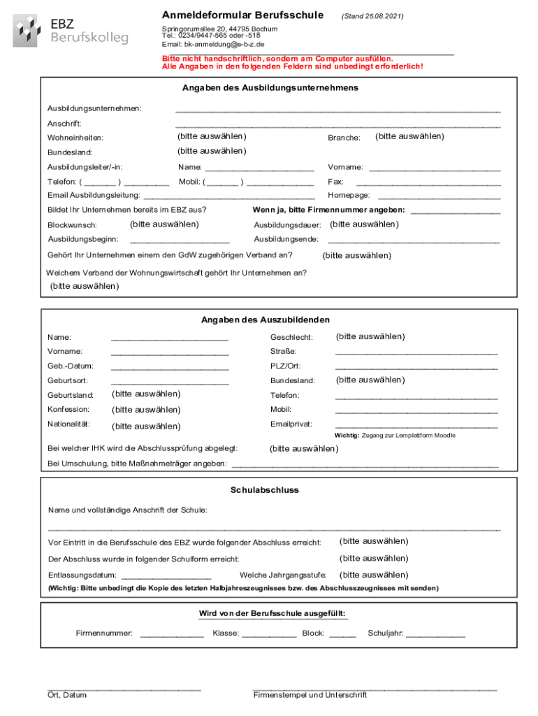 Bochum, 25.01.2021Anmeldung Her been Auszubildenden ab them Scholar 2021/2022Sehr George Dame UND Herren,