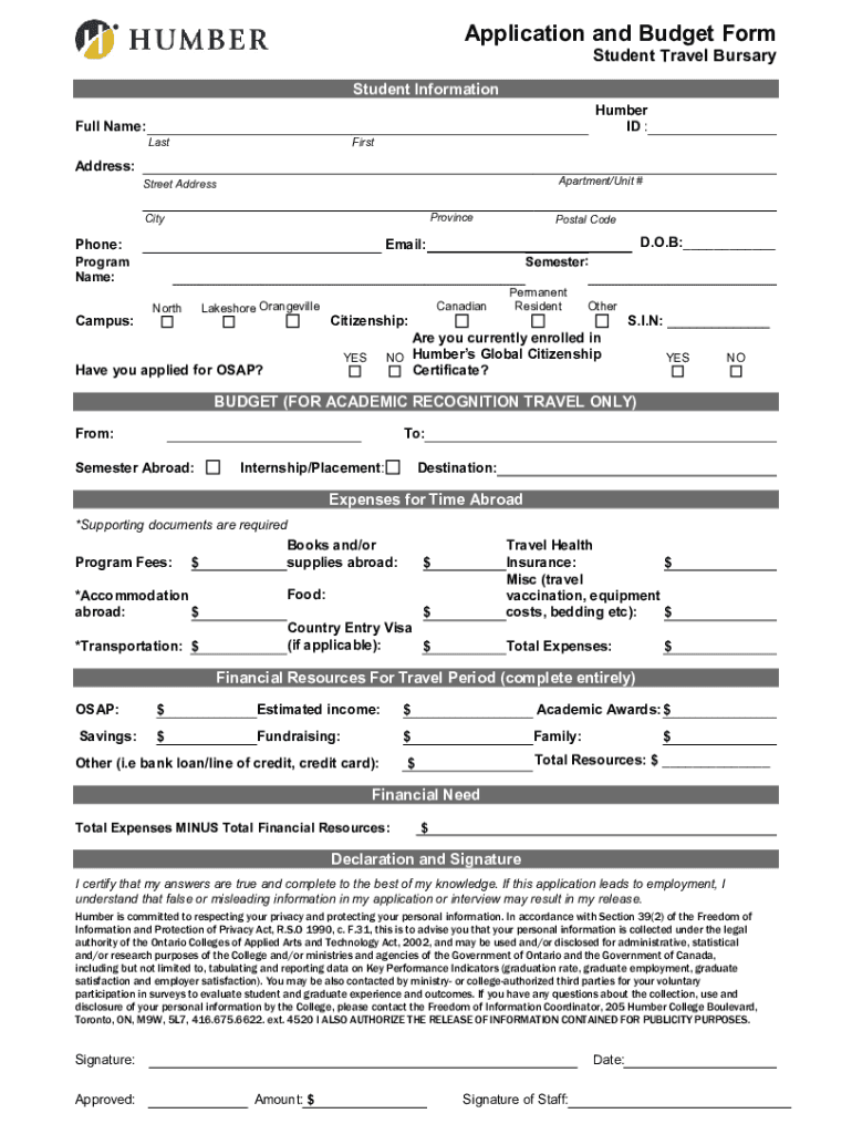 Student Travel Bursary Humber College Institute of Technology & Advanced Learning is pleased to offer a Student Travel Bursary to assist students who are completing an educational experience abroad: