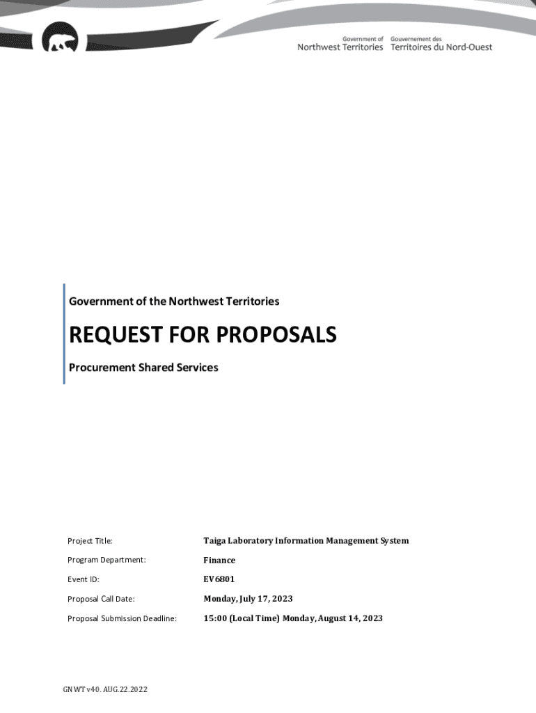 Government of the Northwest TerritoriesREQUEST FOR PROPOSALS