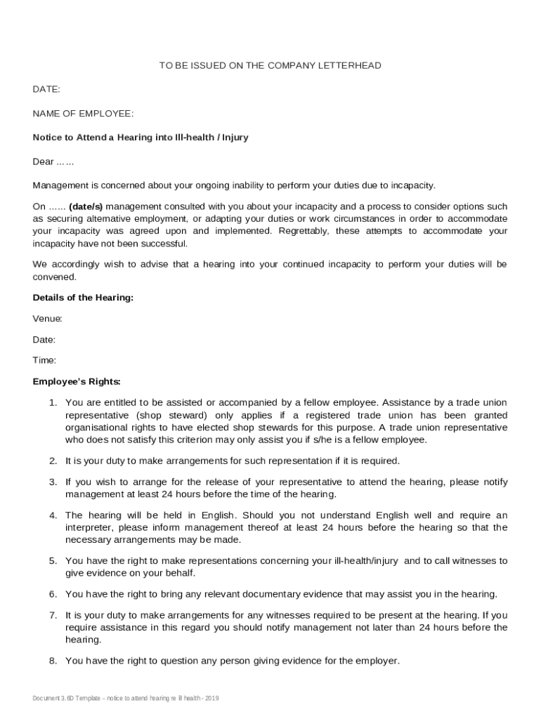 How to fill Notice to Attend a Hearing into Ill-health / Injury - PDLU word template