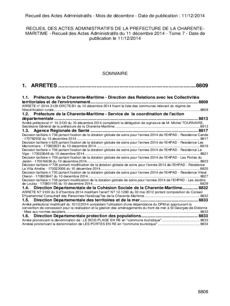RECOIL DES ACTS ADMINISTRATION DE LA PREFECTURE DE LA CHARENTEMARITIME Rectal DES Acts Administration Du 11 December