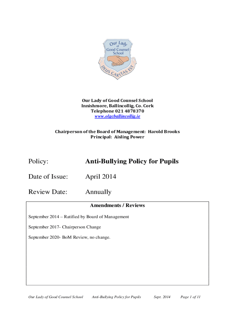 Get the free Anti-Bullying Policy for Pupils Date of Issue