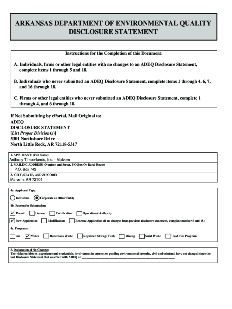 DEQ Form 1 for Individual NODES and State Construction Permit Applications (permits beginning with AR00)Digitally signed by: form DPEPORTALIIS.ADPCEDMZ.state.AR.us Date: 2023.03.20 13:04:47 05:00