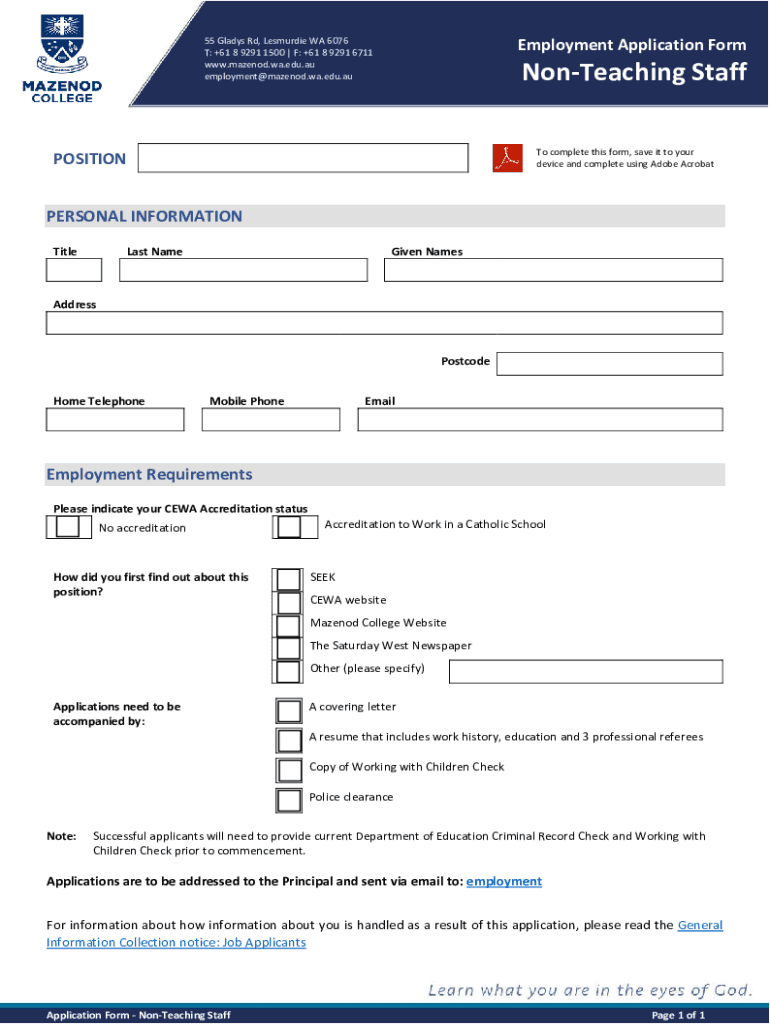 employment@mazenod.wa.edu.auNonTeaching Staff