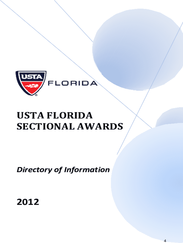 USTA FLORIDA SECTIONAL AWARDSDirectory of Information20124January 2012 The USTA Florida Volunteer Council is pleased to provide you with this concise edition of the USTA Florida Awards Directory of