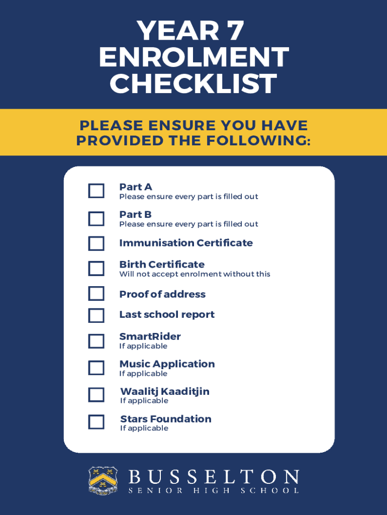 YEAR 7 Enrollment CHECKLIST PLEASE ENSURE YOU HAVE YEAR 7 INCOMING PARENT INFORMATION EVENING PROVIDED THE FOLLOWING: Part Please ensure every part is filled output Please ensure every part is filled