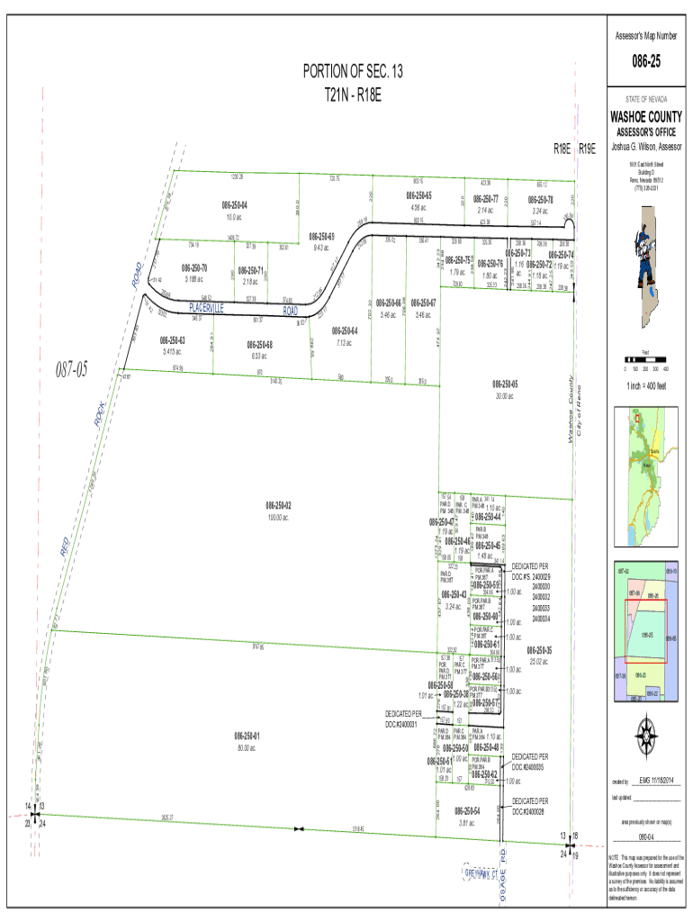 Assessor\'s Map Number08625PORTION OF SEC. 13 T21N R18ESTATE OF NEVADAWASHOE COUNTY R18E874.99327.39374.83ROAD901.376.53 ac.086250645.46 ac.220220ac.1208.38325.33208.361.18 ac. 208.3808625067249.59329.82086250661.80