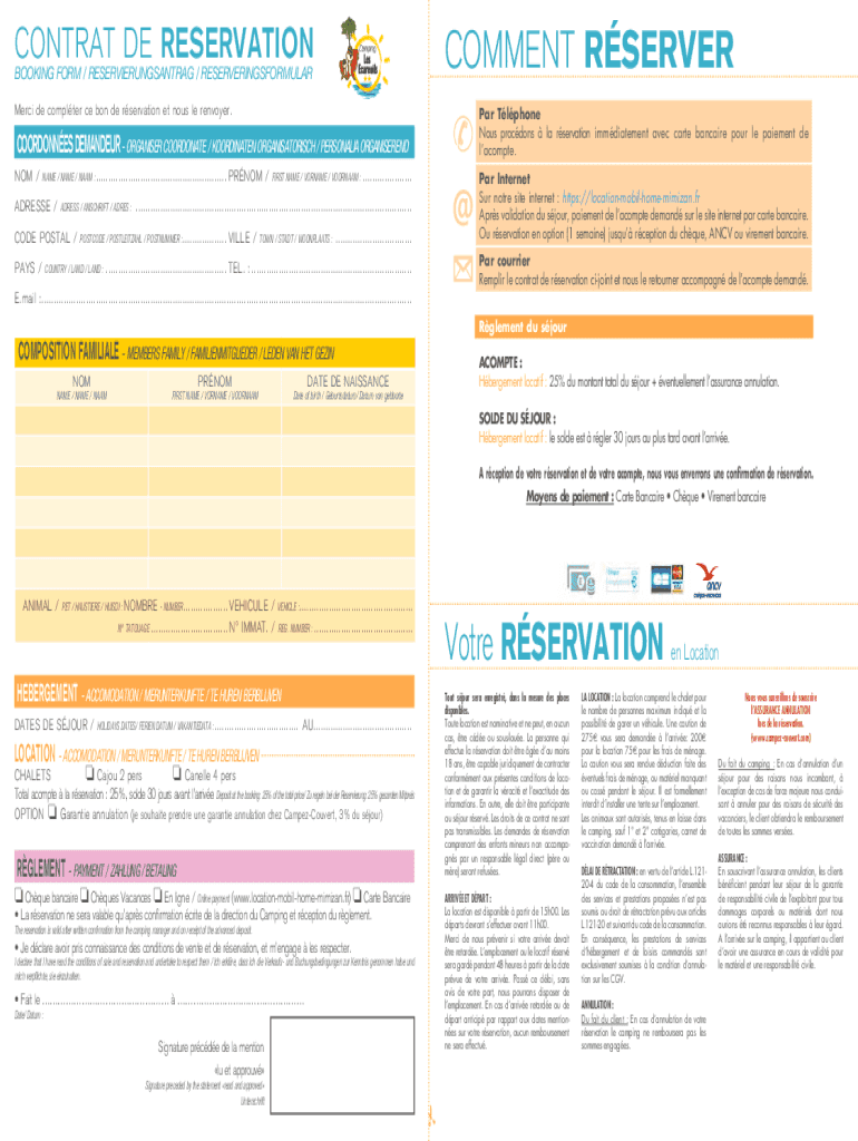 BOOKING FORM / RESERVIERUNGSANTRAG / RESERVERINGSFORMULAR