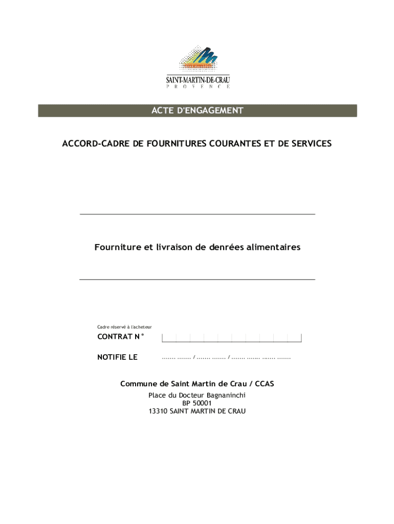 Obtenir le gratuit acte d'engagement marche de fourniture de denrees ...
