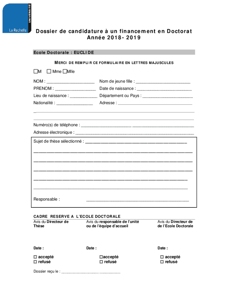 Si votre candidature est acceptée, procédez à l'inscription officielle auprès de l'université et suivez les instructions pour débuter votre doctorat.
