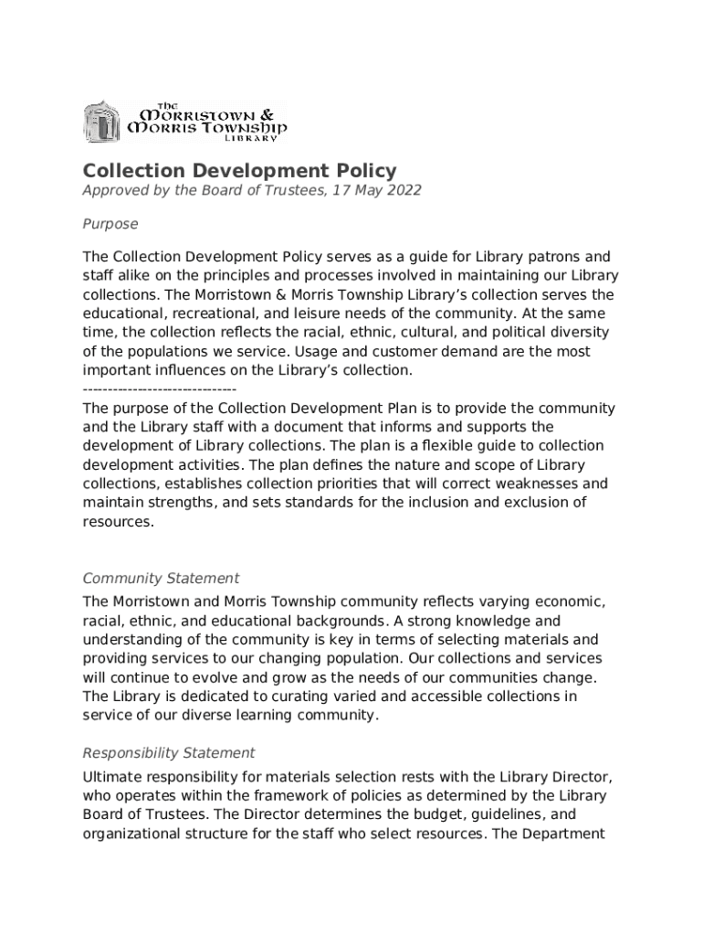 Instructions for the form BOARD OF TRUSTEES POLICY Collection Development ...