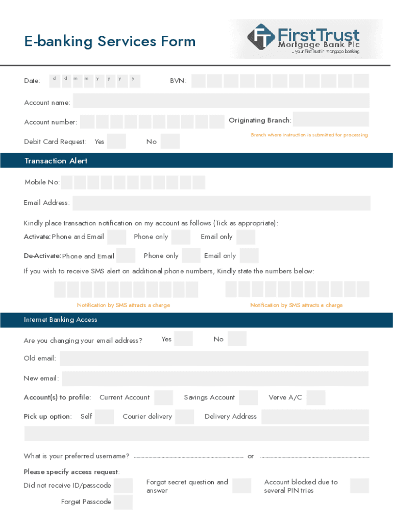 Debit Card Request:Yes Branch where instruction is submitted for processingNoTransaction Alert