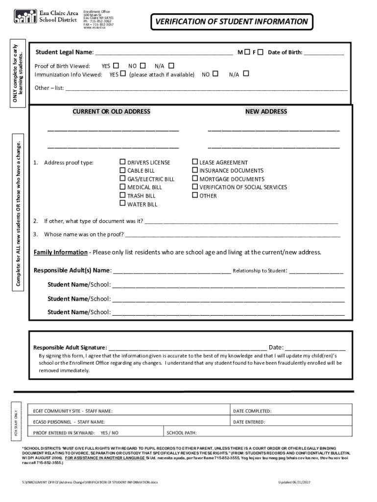 www.ecasd.usVERIFICATION OF STUDENT INFORMATIONStudent Legal Name: ___ M