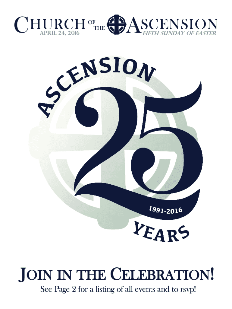 C CHURCH April 24, 2016OF ASCENSION Fifth Sunday of Eastern IN THE CELEBRATION! See Page 2 for a listing of all events and to rsvp! Church of the Ascension is 25! COME CELEBRATE on May 7! 11:00 a.m.