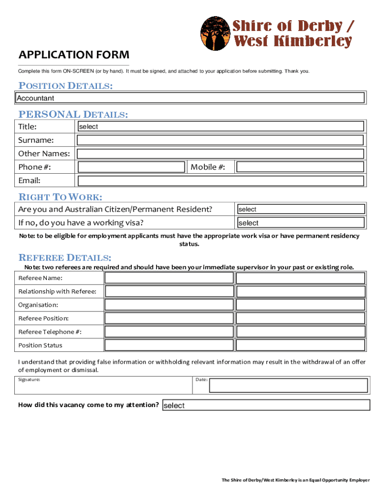 Complete this form ONSCREEN (or by hand). It must be signed, and attached to your application before submitting. Thank you. POSITION DETAILS: