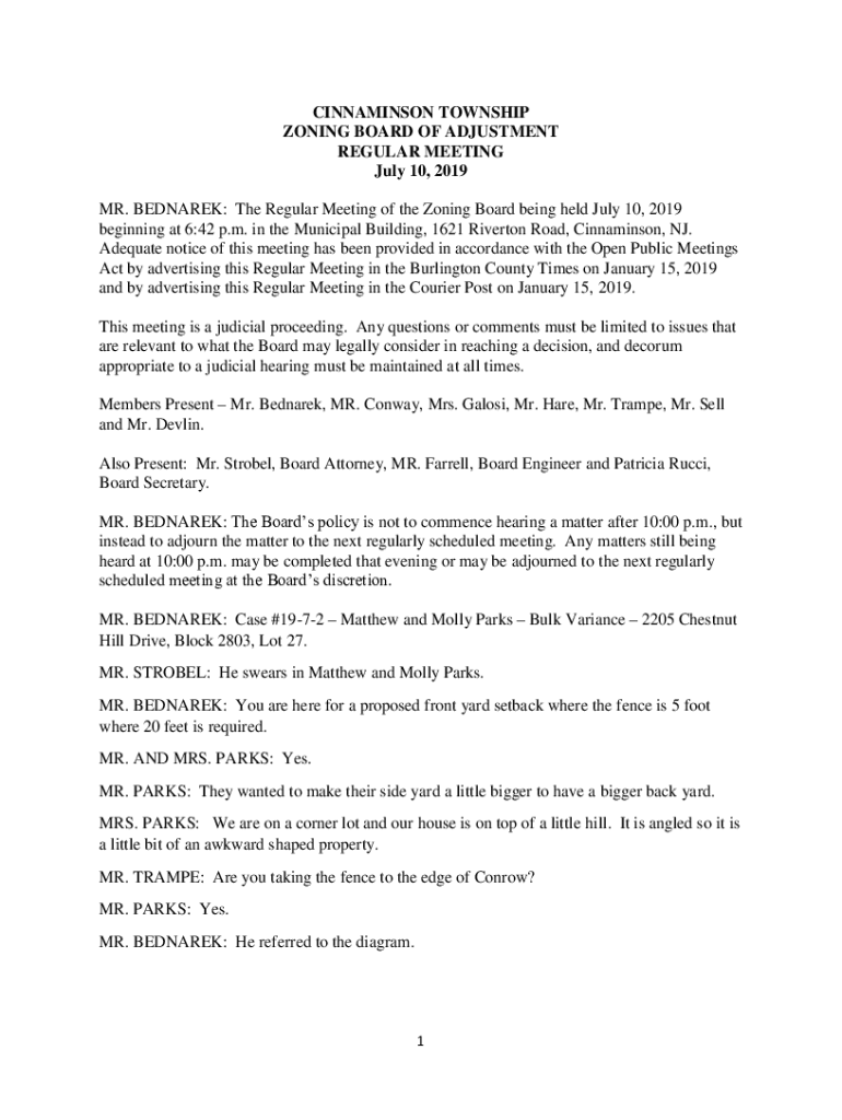 MR. BERNARD: The Regular Meeting of the Zoning Board being held July 10, 2019,
