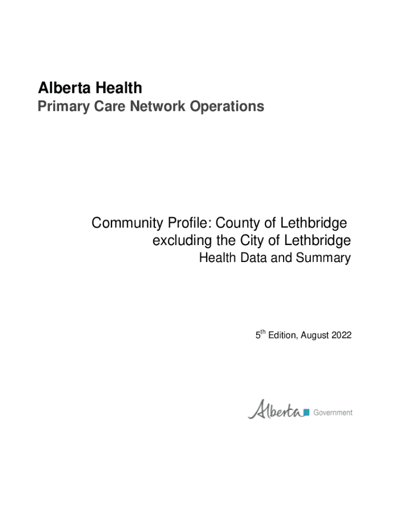 Alberta Health Primary Care Network OperationsCommunity Profile: County of Lethbridge excluding the City of Lethbridge Health Data and Summary5th Edition, August 2022Alberta Health Community Profile:
