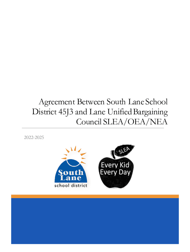 Agreement Between South Lane School District 45J3 and Lane Unified Bargaining Council SEA/OEA/NEA 2022202520222025 SEA Collective Bargaining Agreement1|Vegetable of Contents Article 1 RECOGNITION