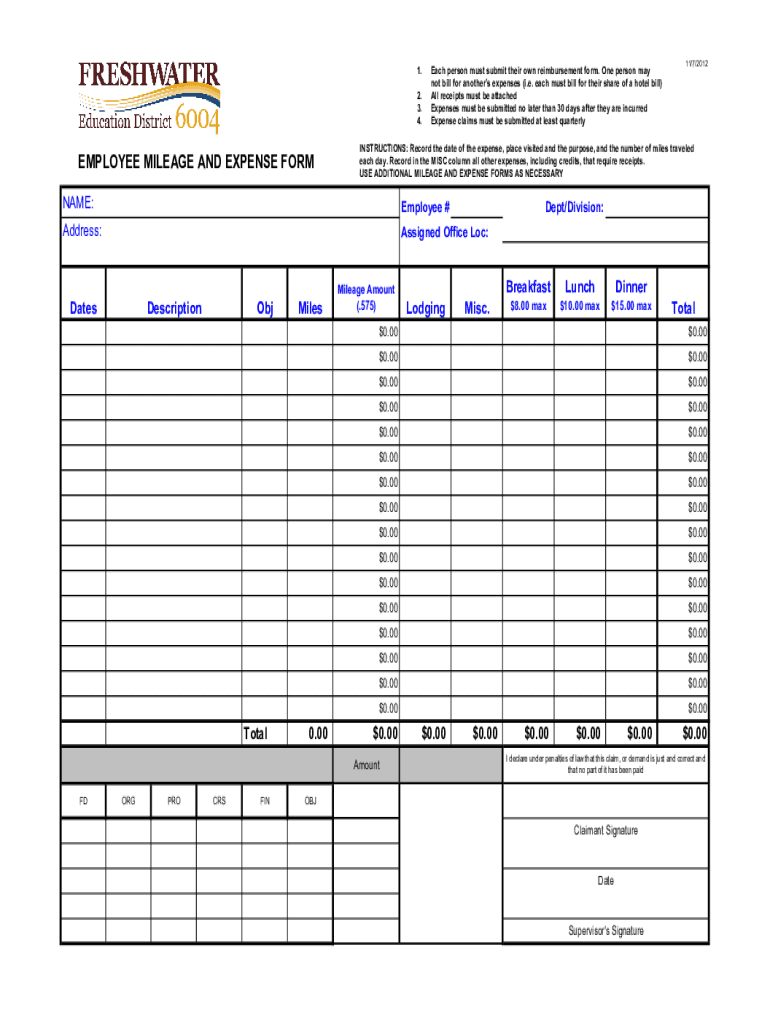 1. 2. 3. 4.EMPLOYEE MILEAGE AND EXPENSE Former person must submit their own reimbursement form. One person may not bill for another expenses (i.e. each must bill for their share of a hotel bill) All