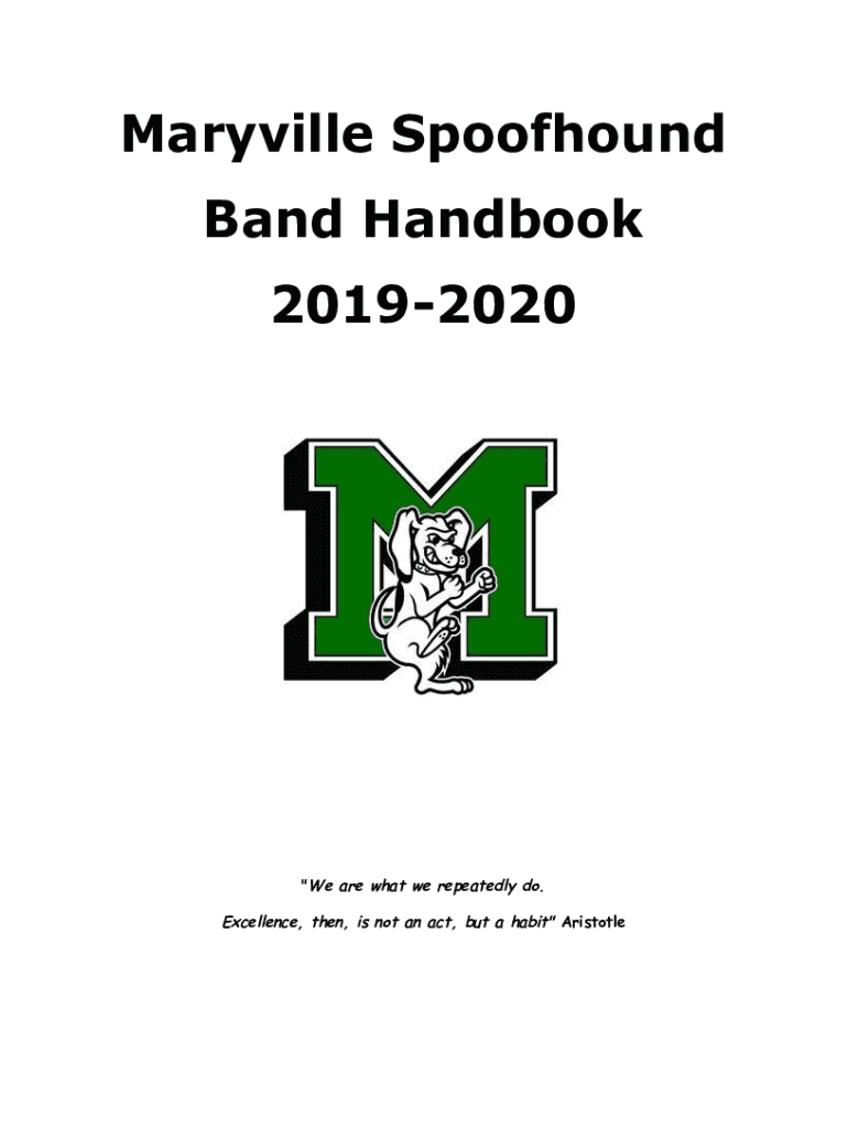 Maryville Spoof hound Band Handbook 20192020 \”We are what we repeatedly do. Excellence, then, is not an act, but a habit\” Aristotle Band Staff Directors: Head Director: Mr. Tim Gil ham, gilham@maryviller2.com