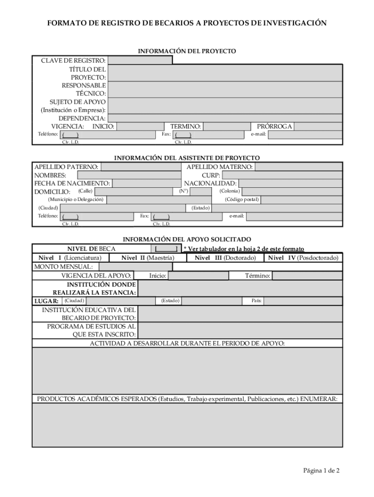 FORMATODEREGISTRODEBECARIOSAPROYECTOSDEINVESTIGACININFORMACINDELPROYECTO