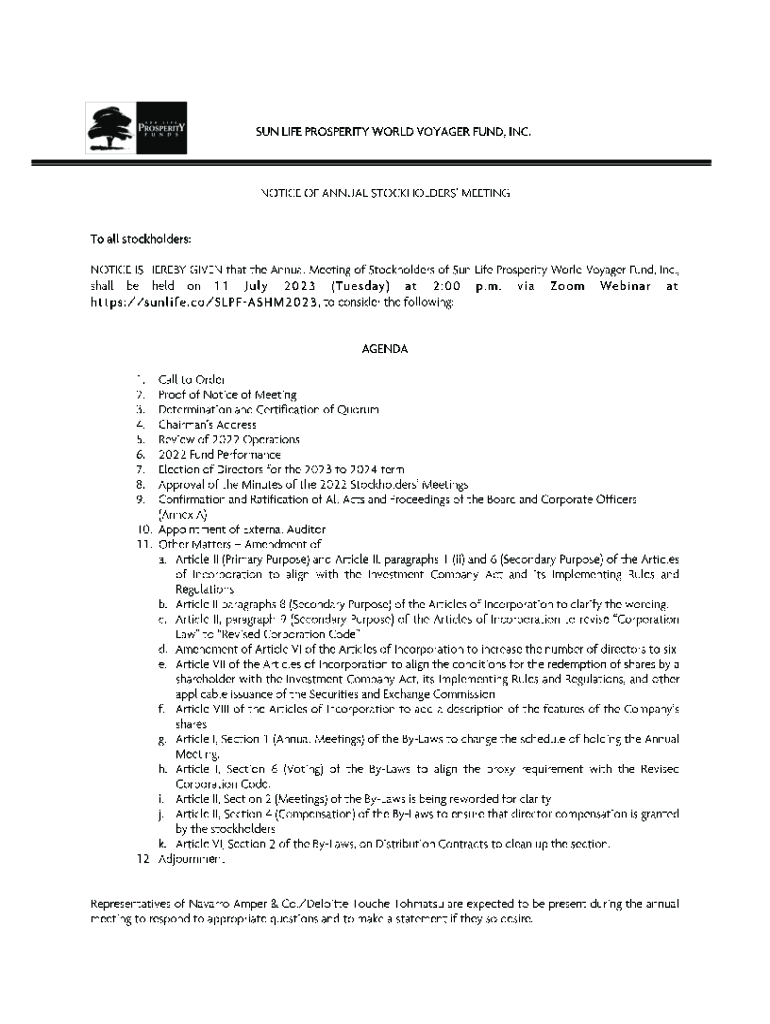 Get the free Sun Life Prosperity World Voyager Fund, Inc.Definitive SEC Form 20-IS2023.pdf