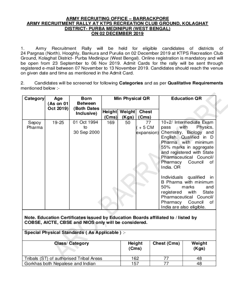 Fill out your army recruiting office barrackpore online with pdfFiller!