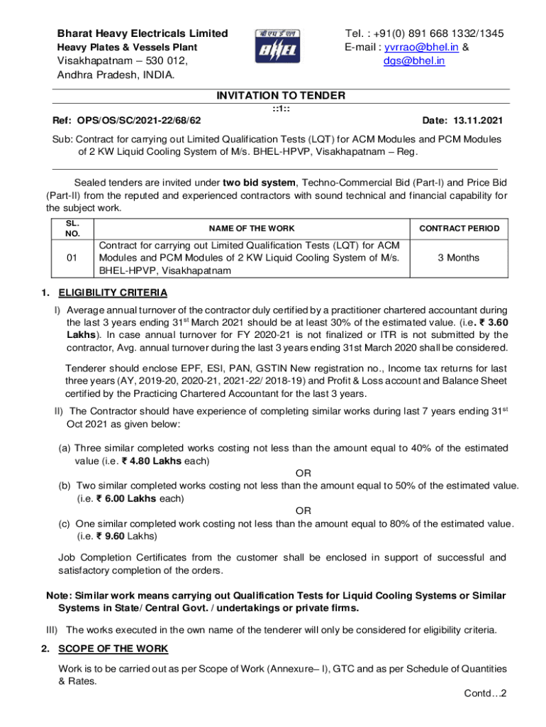 dgs@bhel.inHeavy Plates & Vessels PlantVisakhapatnam 530 012,