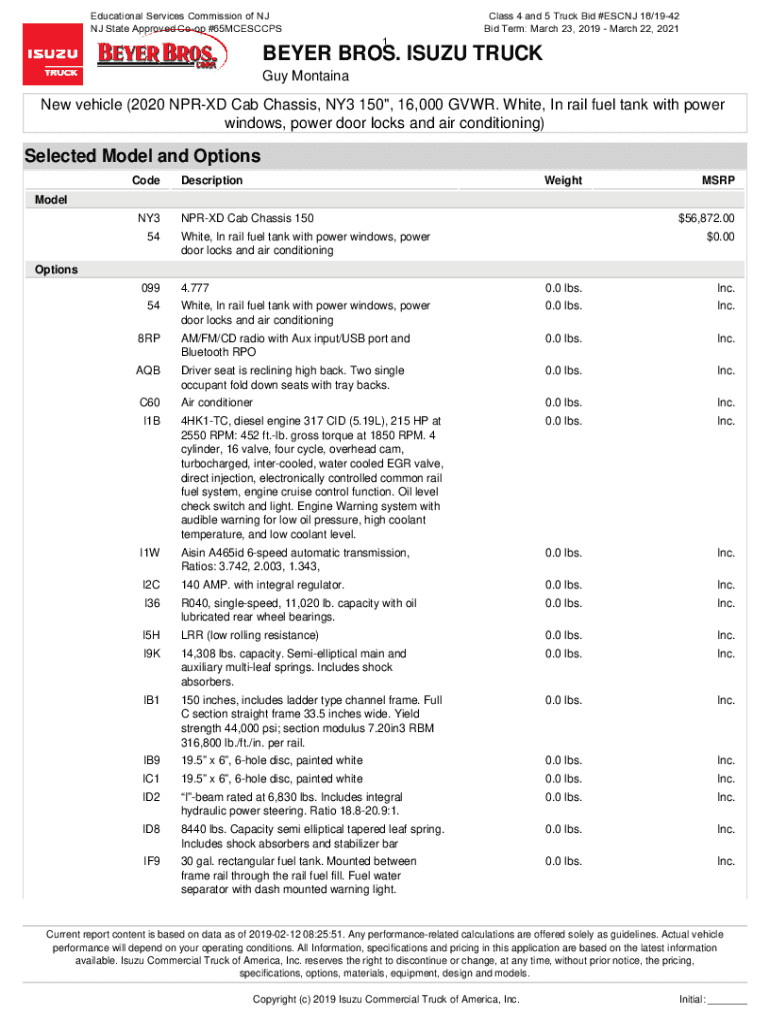 Educational Services Commission of NJ State Approved Coop #65MCESCCPS1Class 4 and 5 Truck Bid #ES CNJ 18/1942 Bid Term: March 23, 2019, March 22, 2021BEYER BROS. ISUZU TRUCK Guy Montaigne vehicle