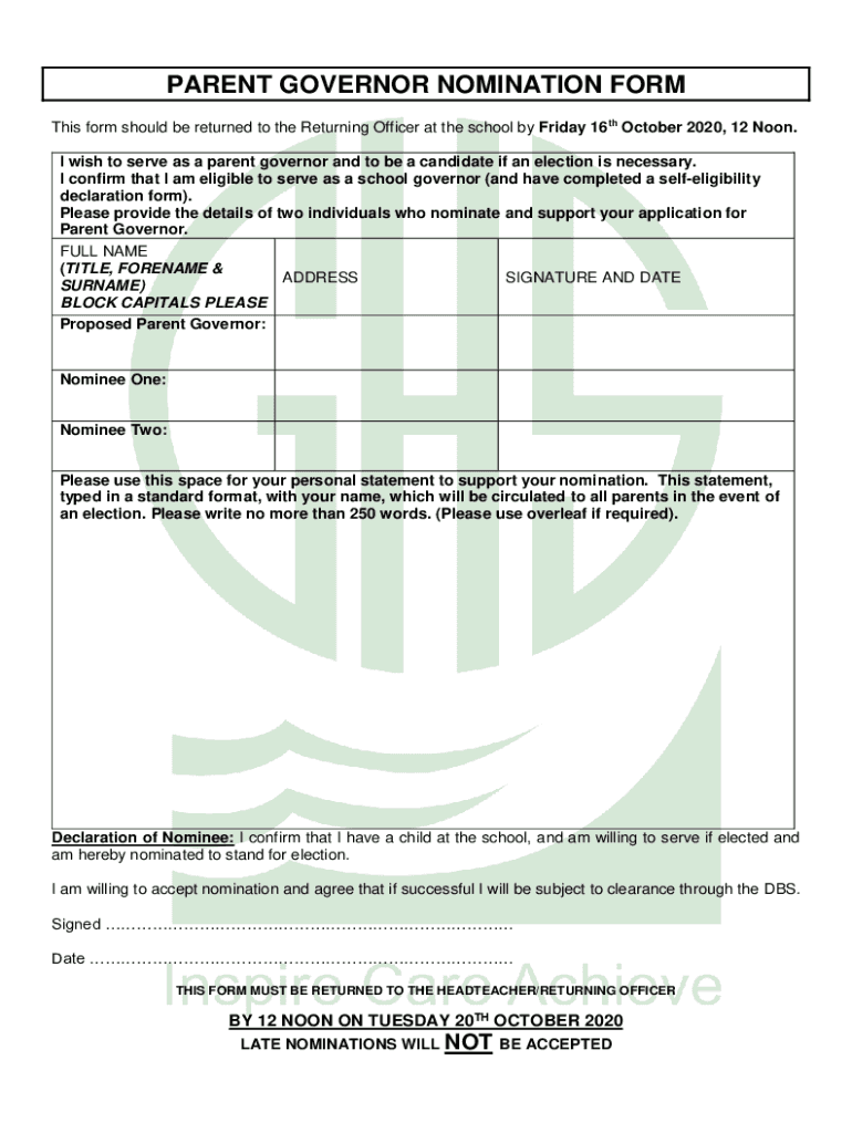 Get the free Parent Governor nomination letter and form