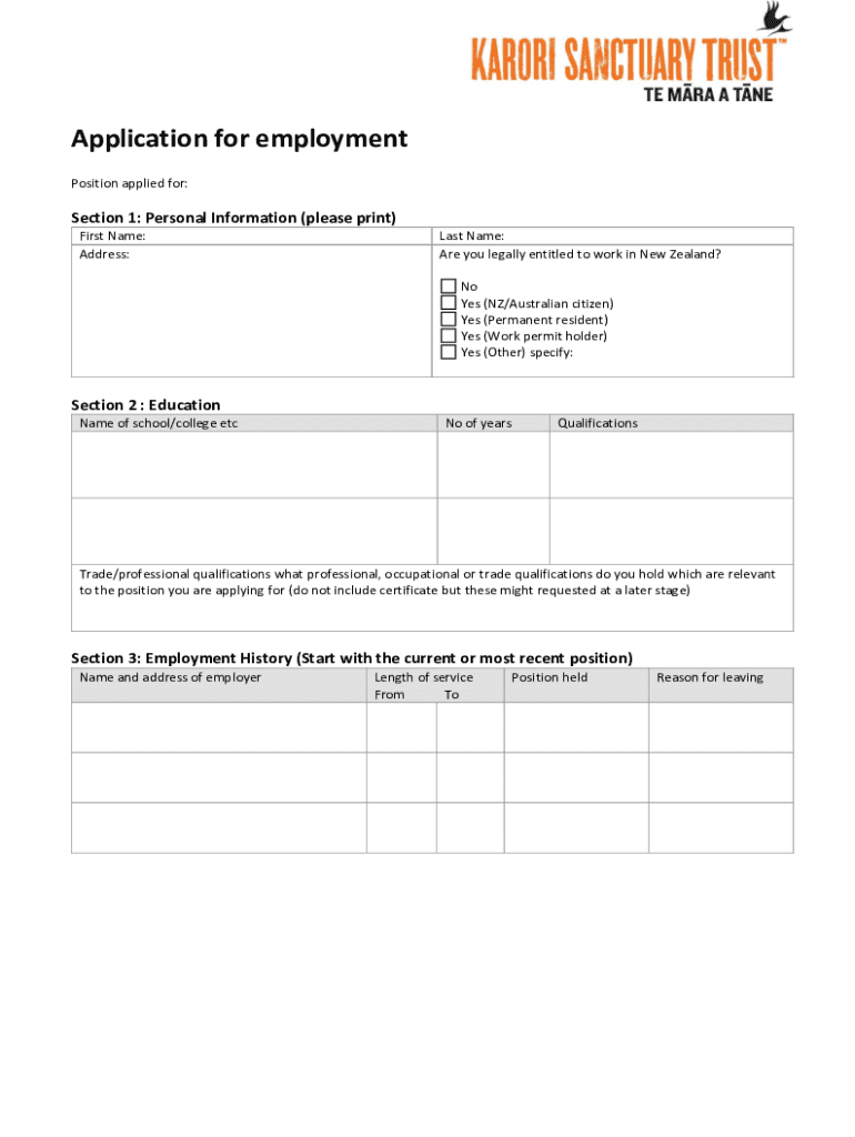 Application for employment