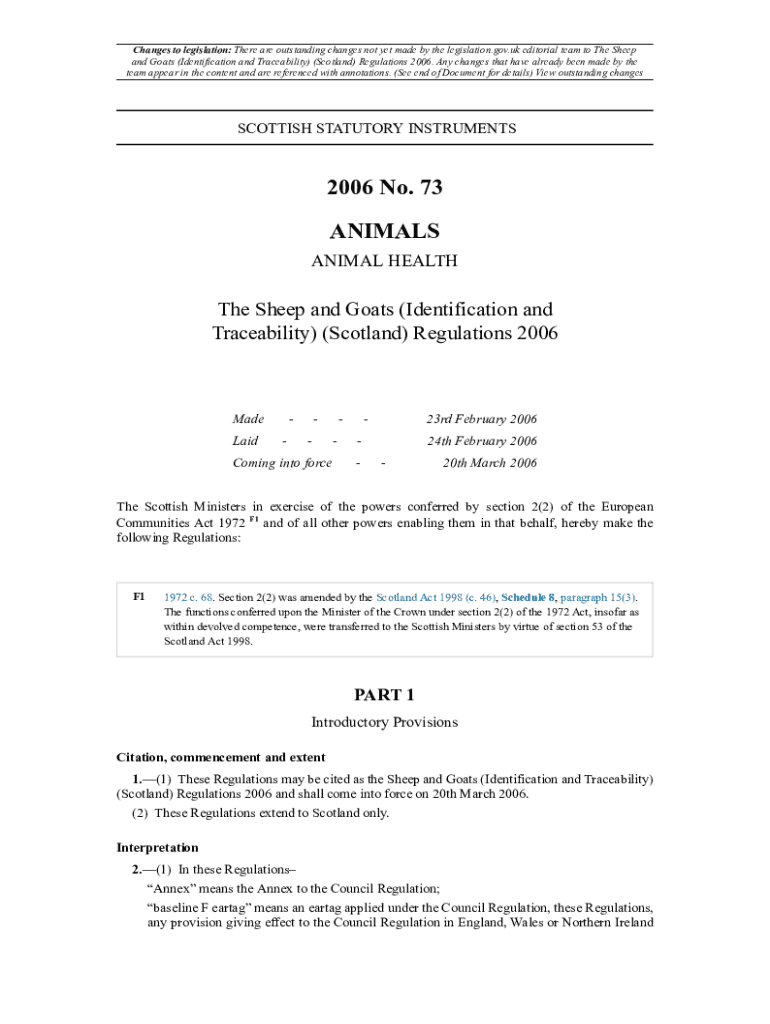 Changes to legislation: There are outstanding changes not yet made by the legislation.gov.UK editorial team to The Sheep and Goats (Identification and Traceability) (Scotland) Regulations 2006. Any
