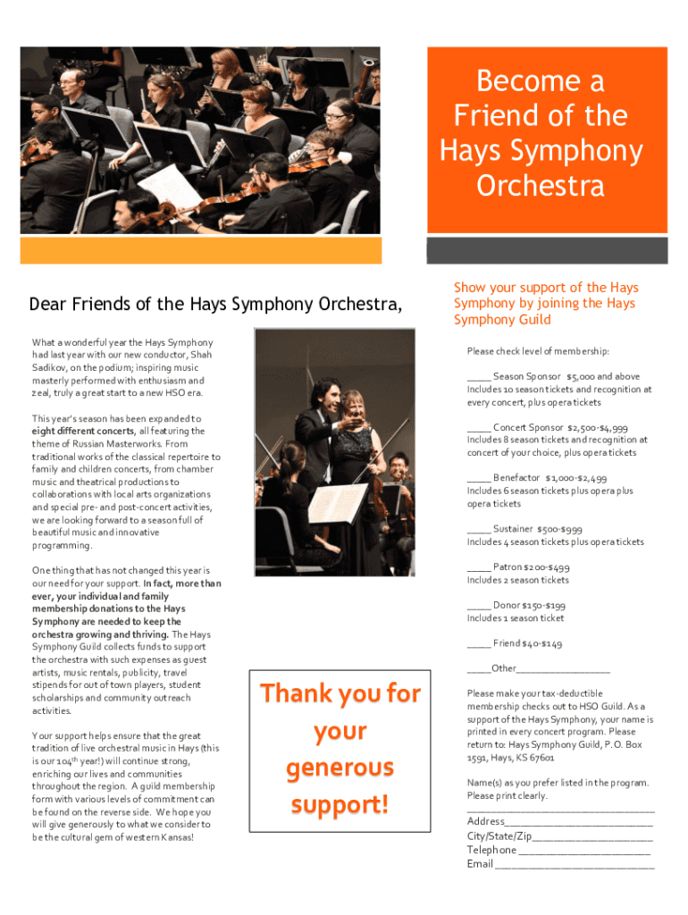 Become a Friend of the Hays Symphony Orchestrated Friends of the Hays Symphony Orchestra, What a wonderful year the Hays Symphony had last year with our new conductor, Shah Radio, on the podium; inspiring