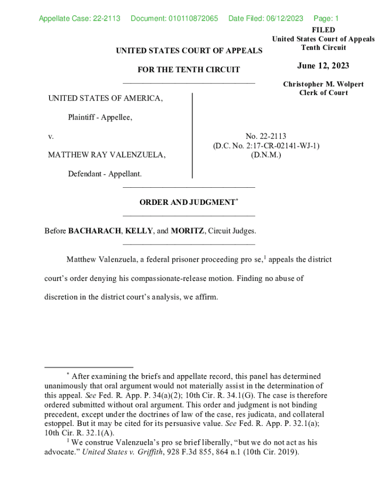 Get the free Appellate Case: 22-2113 Document: 010110872065 Date ... - ca10 washburnlaw