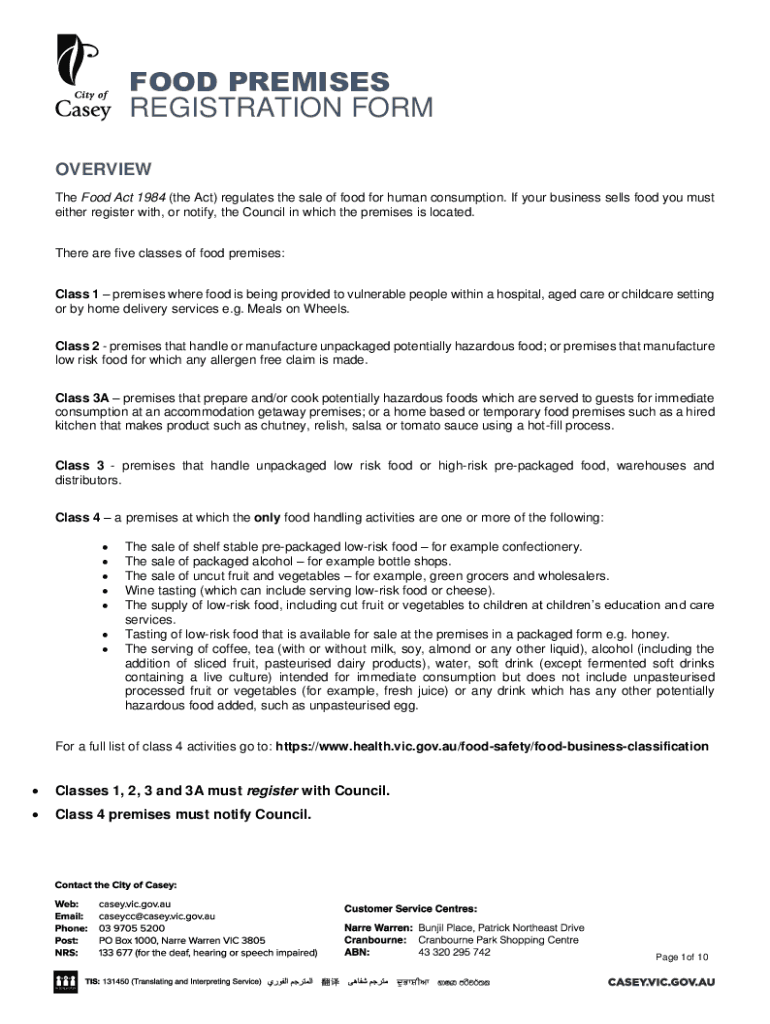 How to fill out food premises registration form