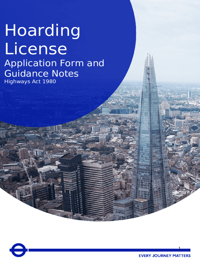 Instructions for the Hoarding application 2018. Highways license application for hoarding on public highway form