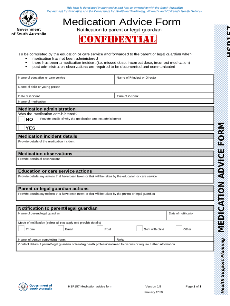 Template HSP157 Medication advice . A used to grant authority for the administration of medication in education and childcare settings. instructions