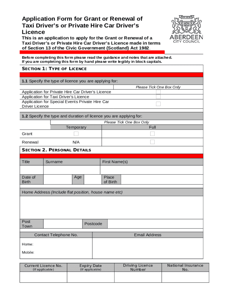 Template Application for Grant or Renewal of Taxi Driver's ... instructions