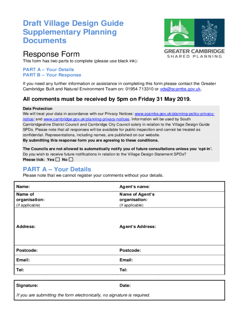 Draft Village Design Guide Supplementary Planning Documents Response Form This form has two parts to complete (please use black ink):PART A Your Details PART B Your Response If you need any further
