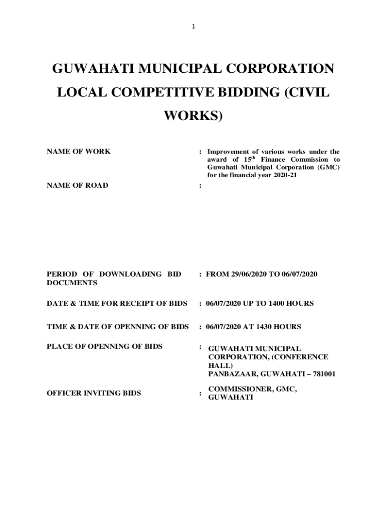 1GUWAHATI MUNICIPAL CORPORATION LOCAL COMPETITIVE BIDDING (CIVIL WORKS) NAME OF WORK: Improvement of various works under the award of 15th Finance Commission to Guwahati Municipal Corporation (GMC)