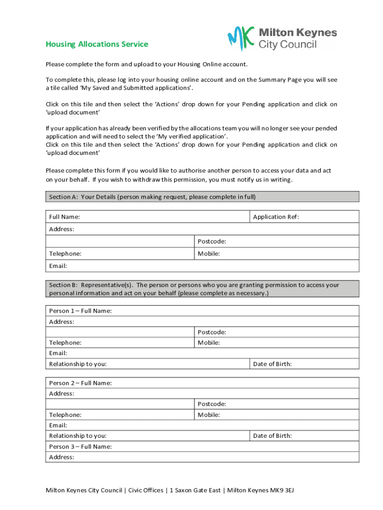 Housing Allocations Service Please complete the form and upload to your Housing Online account. To complete this, please log into your housing online account and on the Summary Page you will see a
