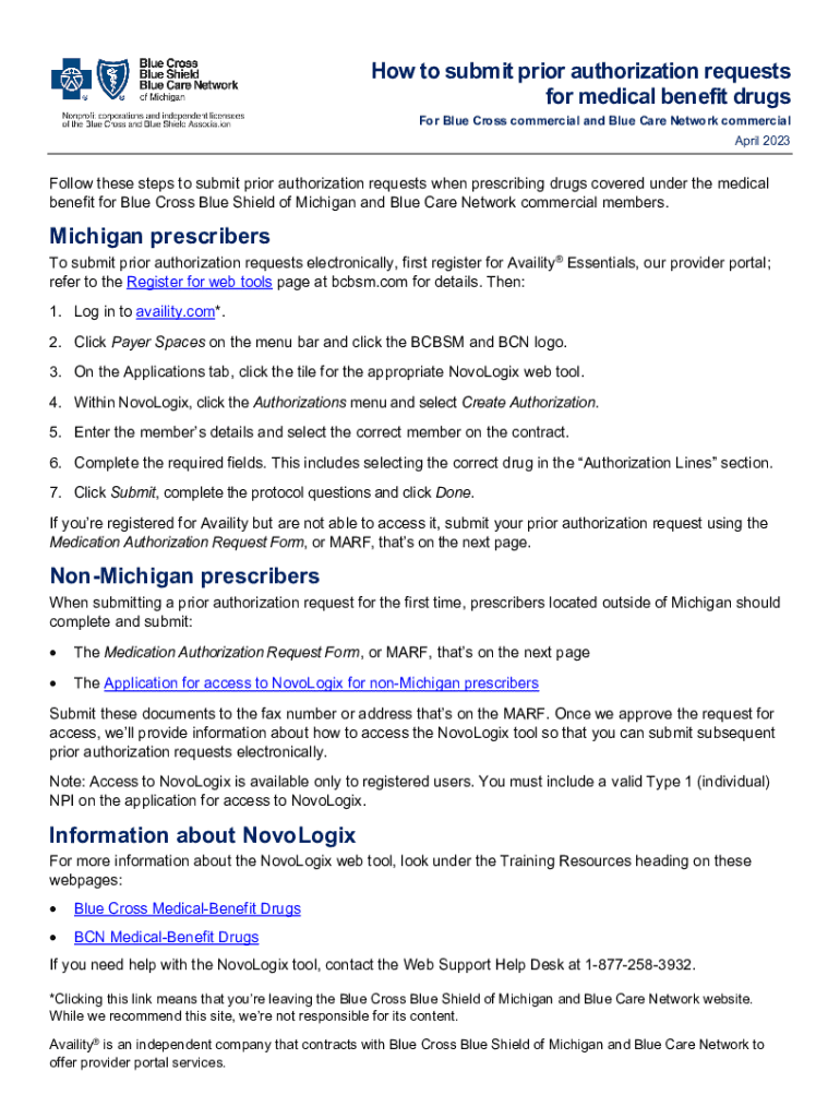 How to submit prior authorization requests for medical benefit drugs For Blue Cross commercial and Blue Care Network commercial April 2023Follow these steps to submit prior authorization requests