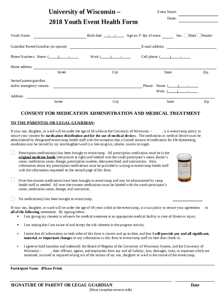 Instructions for the University of Wisconsin2018 Youth Event Health form