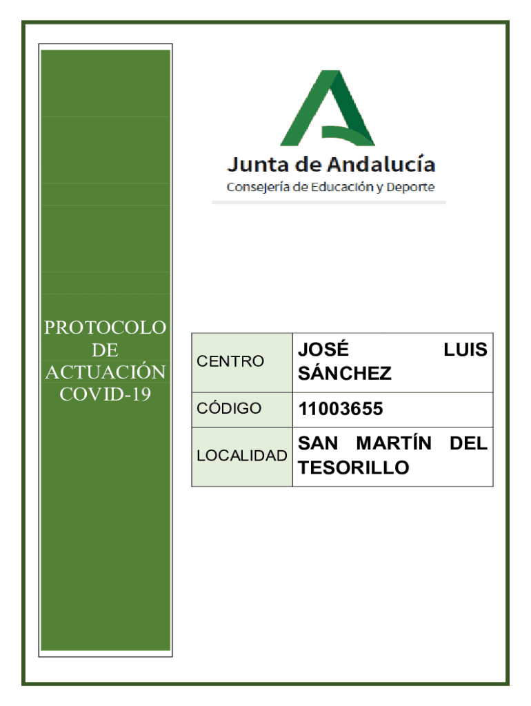 PROTOCOL ODE ACTUATION COVID19CENTROJOS SNCHEZLUISCDIGO11003655LOCALIDADSAN MARTIN DEL TESORILLOCONSEJERA DE EDUCATION Y DEPORTED C.E.I.P. Jo's Luis Sanchez (San Martin del Terrill)Curse 2020/2021
