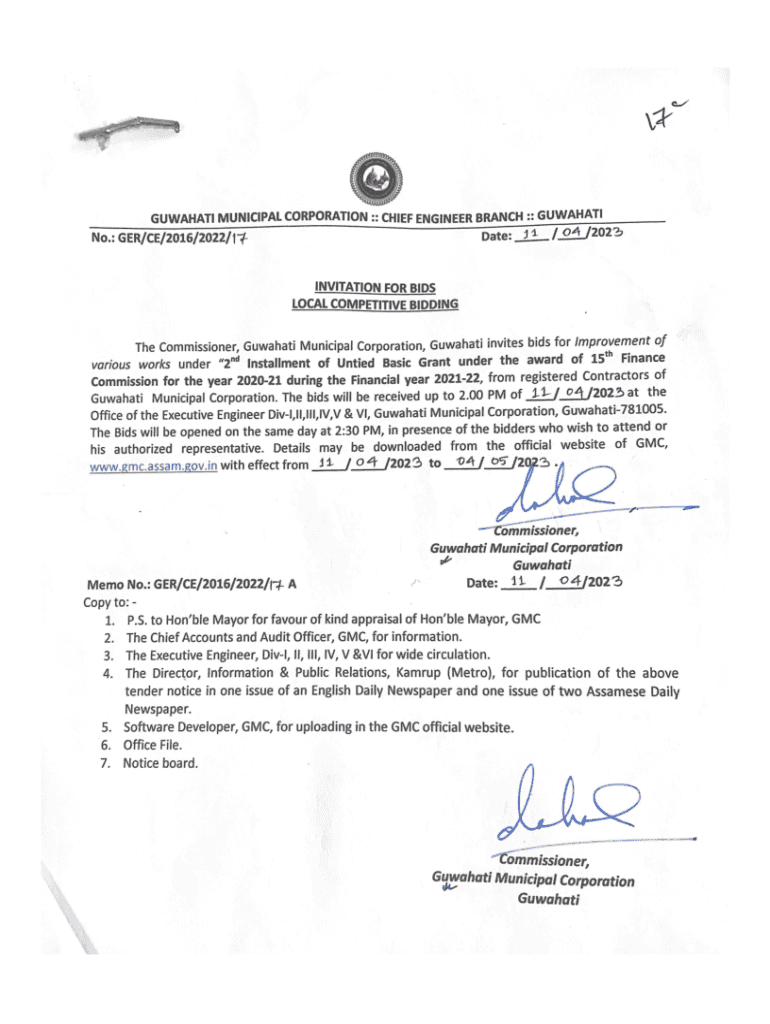 OPEN COMPETITIVE BIDDING (Single stage Single envelope bidding) (For Procurement of Works below Rs. 25 Lakh without procurement)BIDDING DOCUMENTS for PROCUREMENT Improvement of various works under