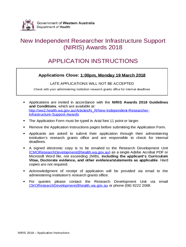- Search for the NIRIS Award 2018 Application ( ... in the Search box on the top of the main page.